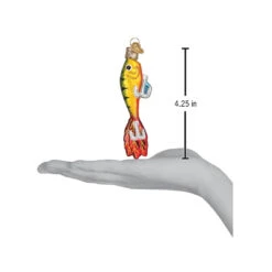 Picking the perfect lure to catch the fish of the day is part science, part art but mostly luck. No matter the lure selected or the fish caught, the fisherman is certain to embellish the size and fight of his catch. This ornament is certain to catch the eye of onlookers on your Christmas tree.