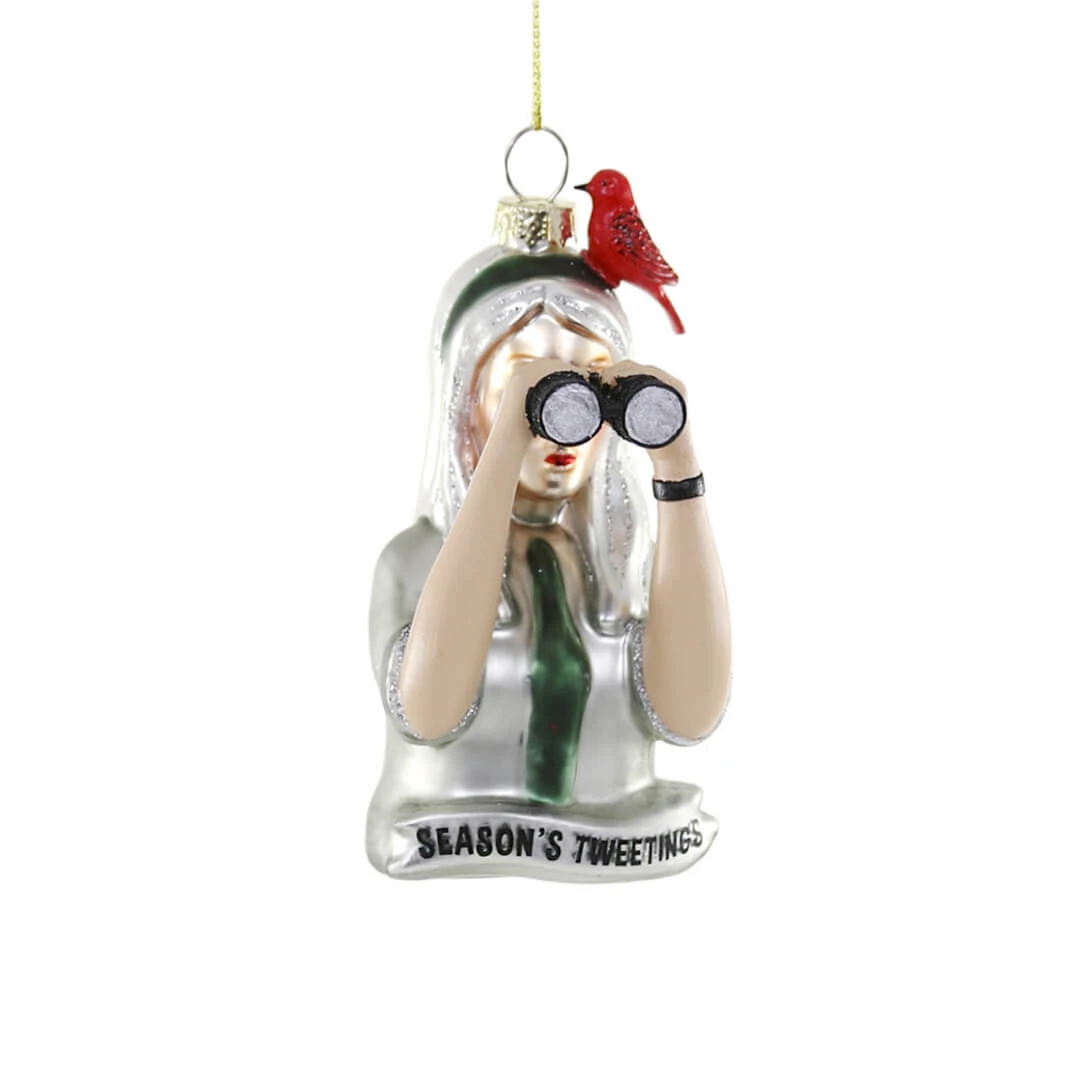 Bird Watchers Season’s Tweeting Ornament, Glass, 4.5″