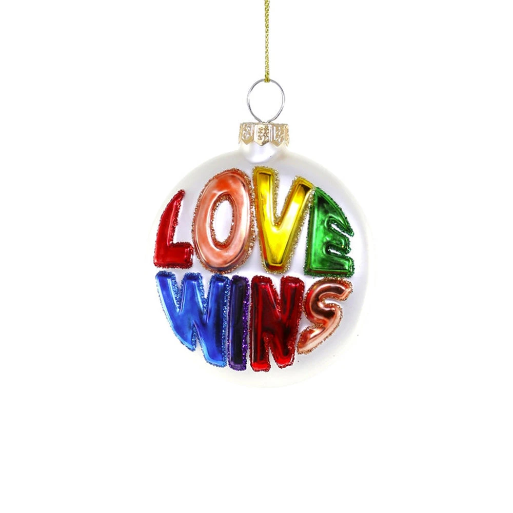 Rainbow Love Wins Ornament, Glass, 3″